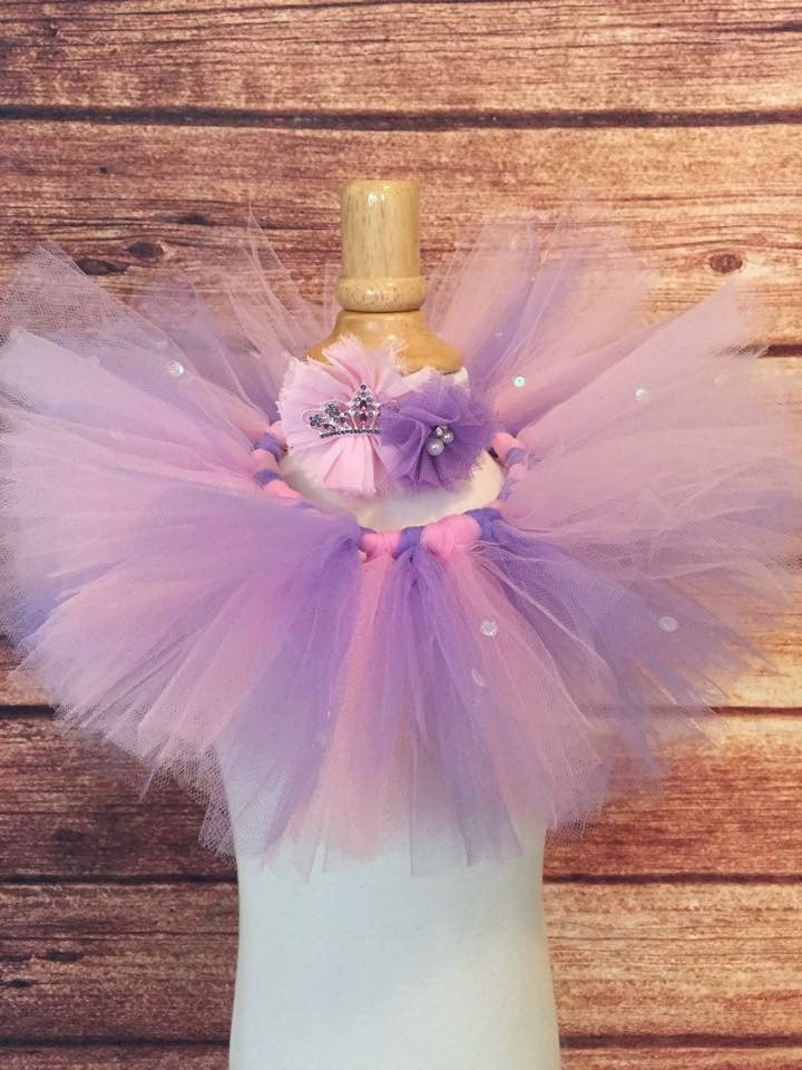 Light pink and lavender tutu made from over 60yd of high quality nylon tulle on a 3/4” elastic waistband for comfort.