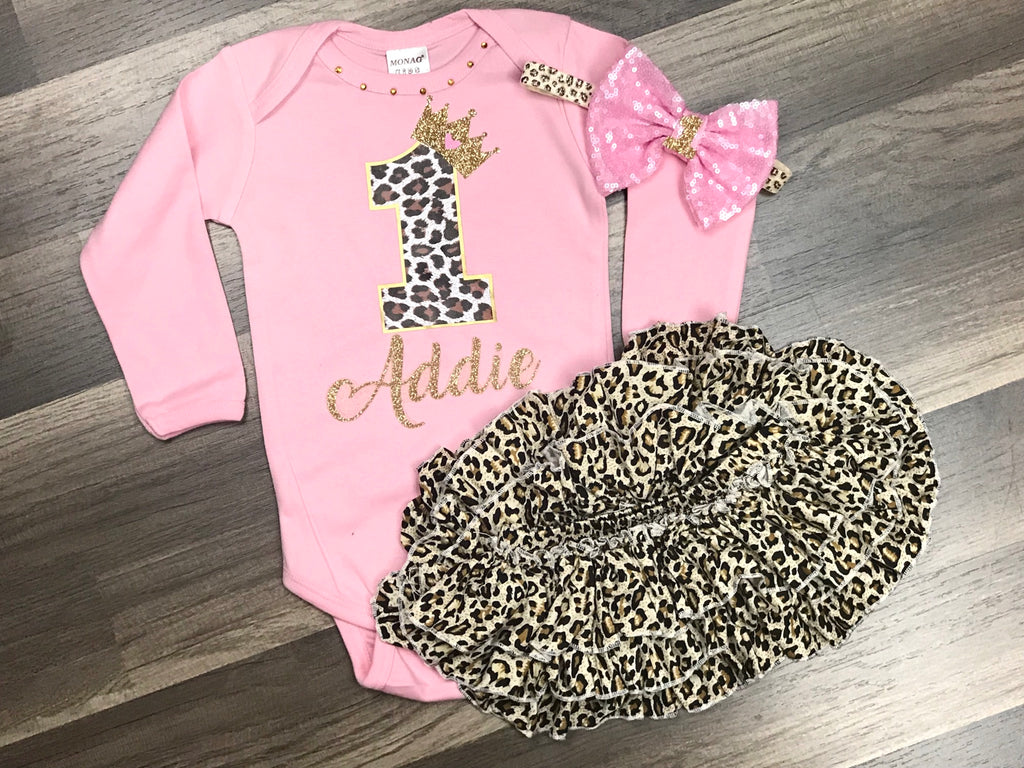 Pink and Leopard 1st Birthday Outfit