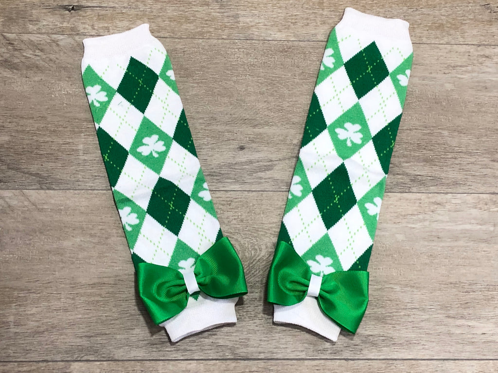 St. Patricks Day leg warmers available with or without bows.